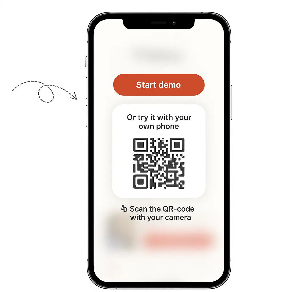 Guests scan the QR-code on their table with their phone and get taken to our website.
